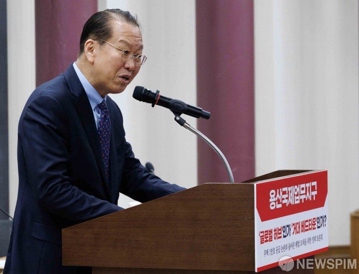[서울=뉴스핌] 윤창빈 기자 = 권영세 국민의힘이 6일 오후 서울 여의도 국회 의원회관에서 열린 용산국제업무지구 '글로벌 허브'인가 '거대 베드타운'인가?' 정책 토론회에서 개회사를 하고 있다. 2026.03.06 pangbin@newspim.com