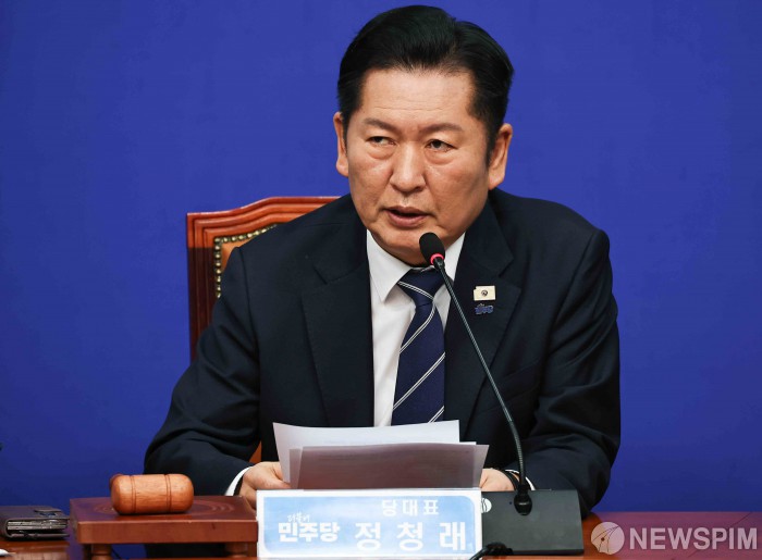[서울=뉴스핌] 윤창빈 기자 = 정청래 더불어민주당 대표가 9일 오전 서울 여의도 국회에서 열린 최고위원회의에서 모두발언을 하고 있다. 2026.03.09 pangbin@newspim.com