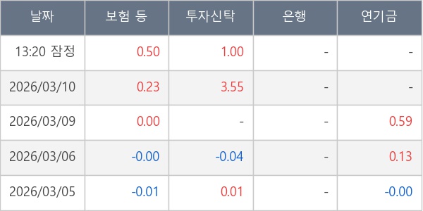 [표] 주요 기관별 순매매량 (단위 만주)