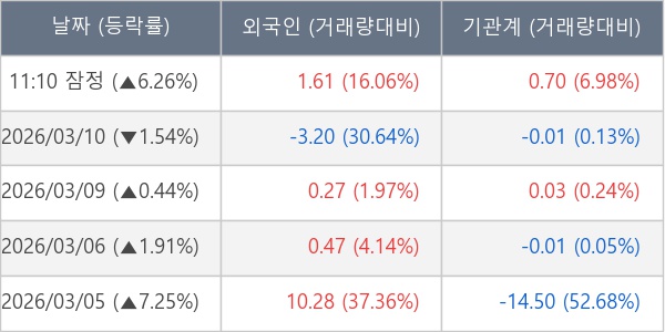 [표] 주요 기관별 순매매량 (단위 만주)