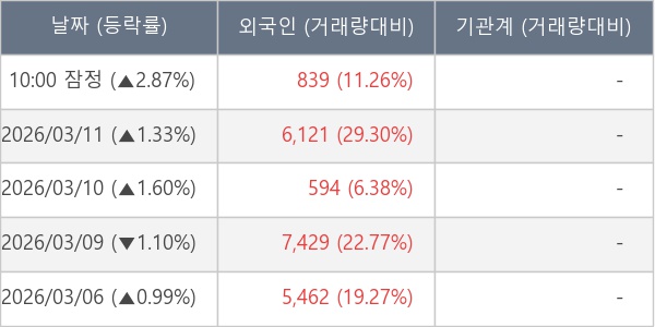 [표] 외국인ㆍ기관 순매매량 (단위 주)