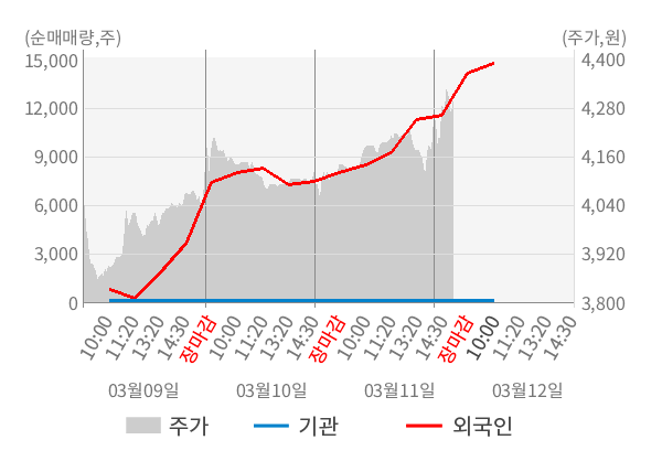 [서울=뉴스핌] 로보뉴스 = 12일 10시 15분 현재 이노뎁(303530)은 전일 대비 2.87% (현재가 4,295원) 상승했고, 외국인이 최근 6일 연속 순매수(누적 41,359주, 잠정) 행진을 하고 있다.