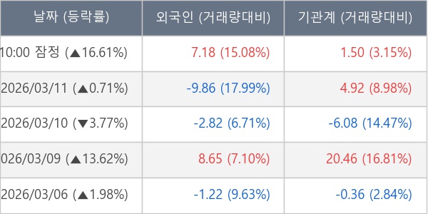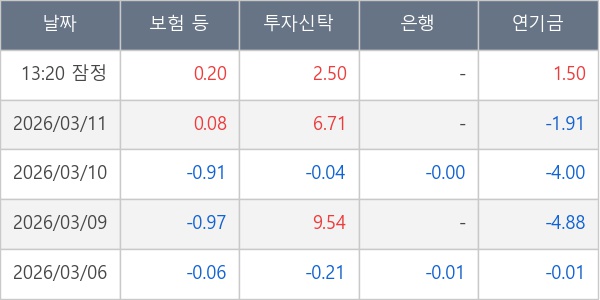 [표] 주요 기관별 순매매량 (단위 만주)