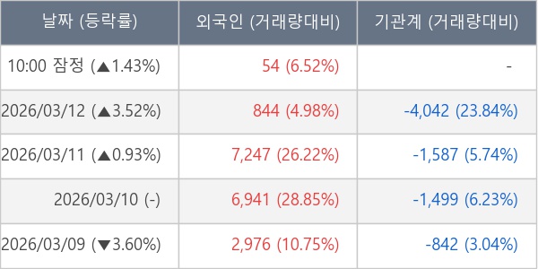 [표] 외국인ㆍ기관 순매매량 (단위 주)