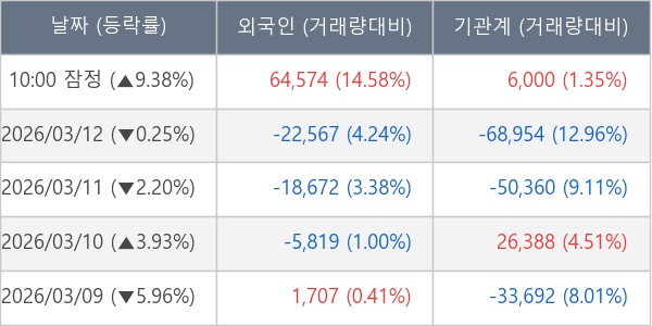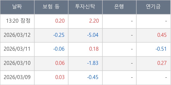 [표] 주요 기관별 순매매량 (단위 주)