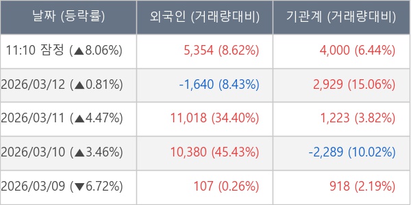 [장중수급포착] 코난테크놀로지, 외국인/기관 동시 순매수… 주가 +8.06%