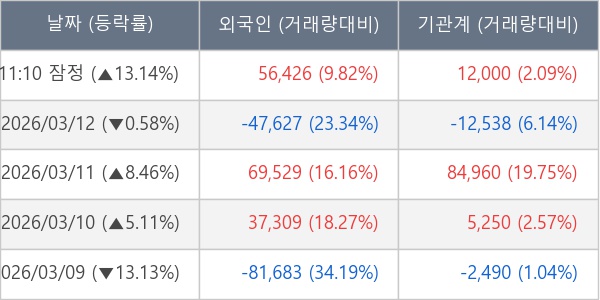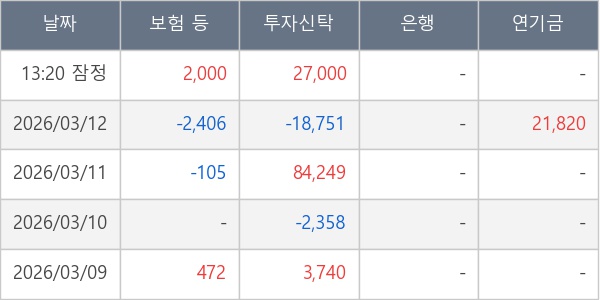 [표] 주요 기관별 순매매량 (단위 주)