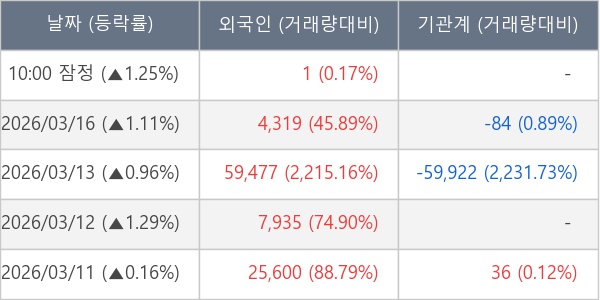 [표] 외국인ㆍ기관 순매매량 (단위 주)