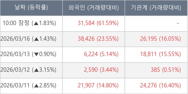 [표] 외국인ㆍ기관 순매매량 (단위 주)