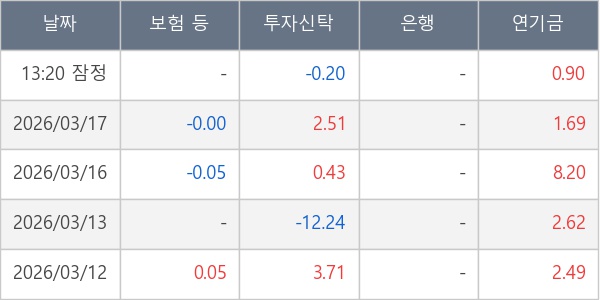 ※ 장중 매매동향은 잠정치이므로 실제 매매동향과 차이가 발생할수 있음