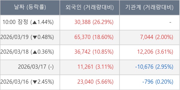[표] 외국인ㆍ기관 순매매량 (단위 주)