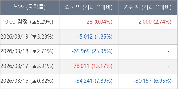 [표] 주요 기관별 순매매량 (단위 주)