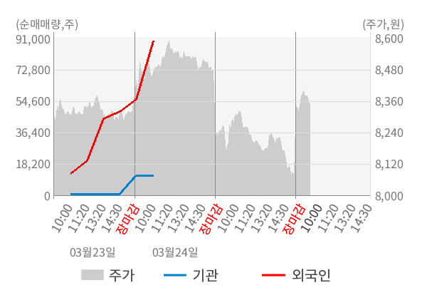 ※ 장중 매매동향은 잠정치이므로 실제 매매동향과 차이가 발생할수 있음