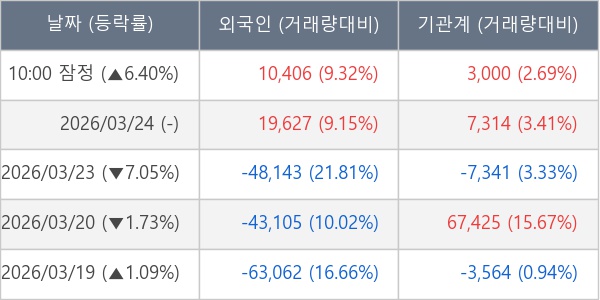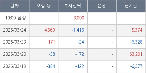 [표] 주요 기관별 순매매량 (단위 주)
