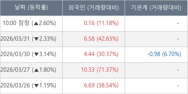 [표] 외국인ㆍ기관 순매매량 (단위 만주)
