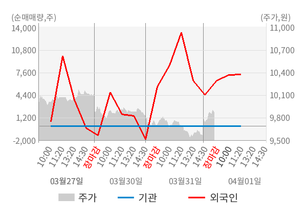 [표] 외국인ㆍ기관 순매매량 (단위 주)