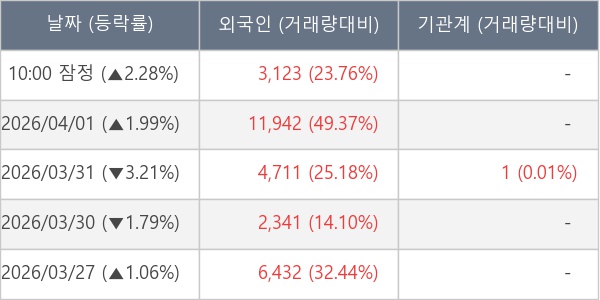 [표] 외국인ㆍ기관 순매매량 (단위 주)
