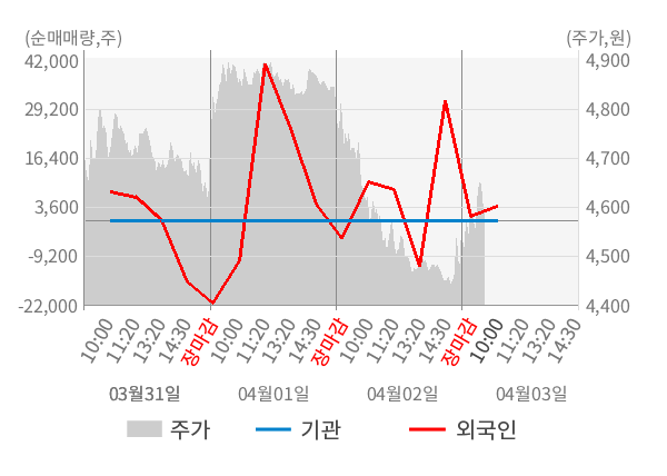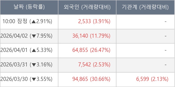 [표] 외국인ㆍ기관 순매매량 (단위 주)