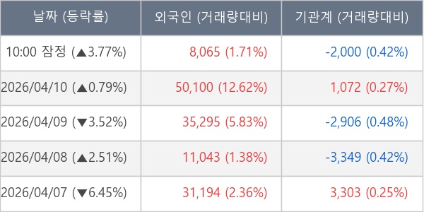 [표] 외국인ㆍ기관 순매매량 (단위 주)