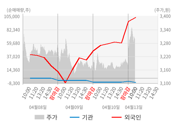 [서울=뉴스핌] 로보뉴스 = 13일 10시 15분 현재 휴비스(079980)는 전일 대비 3.77% (현재가 3,300원) 상승했고, 외국인이 최근 5일 연속 순매수(누적 13.57만 주, 잠정) 행진을 하고 있다.
