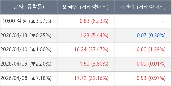 [표] 외국인ㆍ기관 순매매량 (단위 만주)