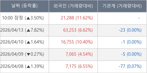 [표] 외국인ㆍ기관 순매매량 (단위 주)
