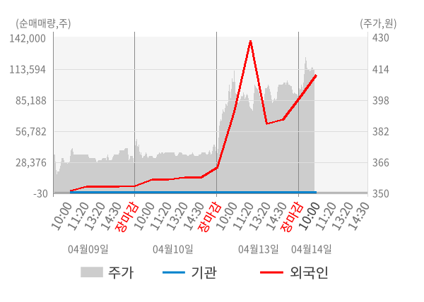 [서울=뉴스핌] 로보뉴스 = 14일 10시 15분 현재 주연테크(044380)는 전일 대비 3.50% (현재가 414원) 상승했고, 외국인이 최근 5일 연속 순매수(누적 11.55만 주, 잠정) 행진을 하고 있다.