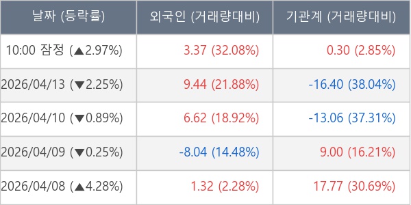 [표] 외국인ㆍ기관 순매매량 (단위 만주)