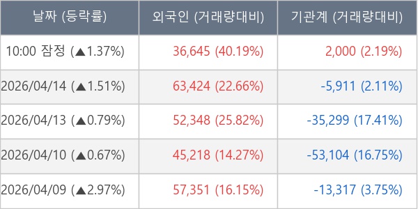 [표] 외국인ㆍ기관 순매매량 (단위 주)