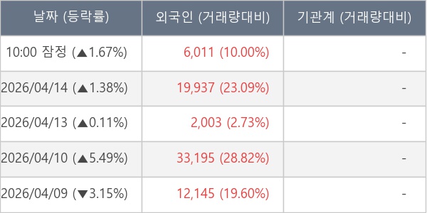 [표] 외국인ㆍ기관 순매매량 (단위 주)