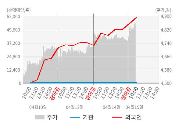 [서울=뉴스핌] 로보뉴스 = 15일 10시 15분 현재 데이타솔루션(263800)은 전일 대비 1.67% (현재가 4,860원) 상승했고, 외국인이 최근 6일 연속 순매수(누적 82,363주, 잠정) 행진을 하고 있다.