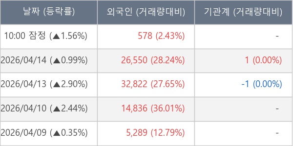 [표] 외국인ㆍ기관 순매매량 (단위 주)