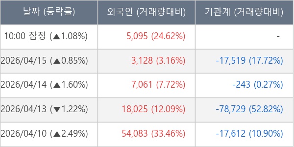 [표] 외국인ㆍ기관 순매매량 (단위 주)