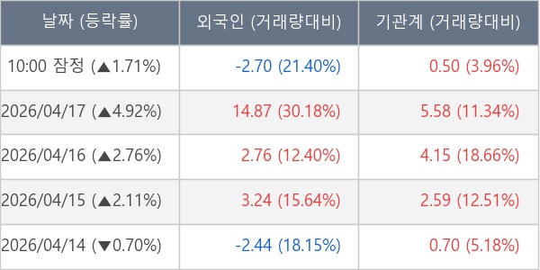 [표] 외국인ㆍ기관 순매매량 (단위 만주)