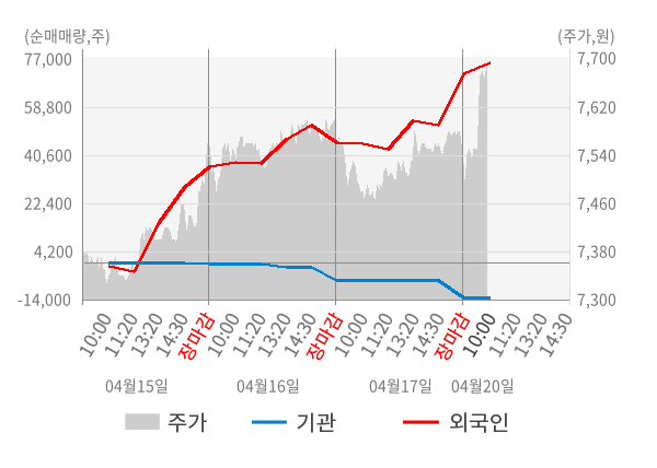 [표] 외국인ㆍ기관 순매매량 (단위 주)