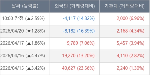 [표] 외국인ㆍ기관 순매매량 (단위 주)