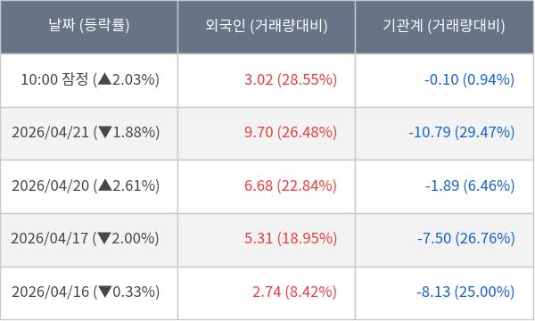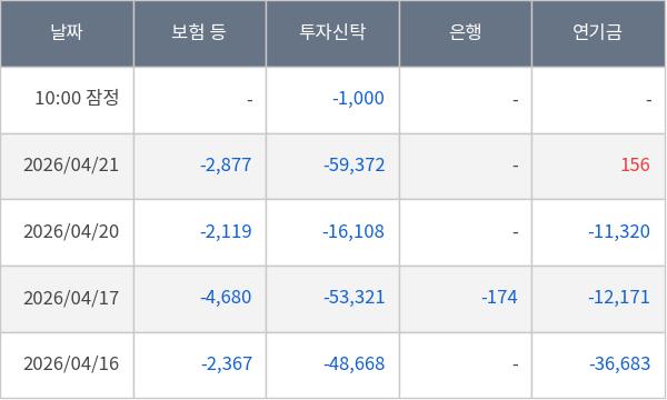 [표] 주요 기관별 순매매량 (단위 주)