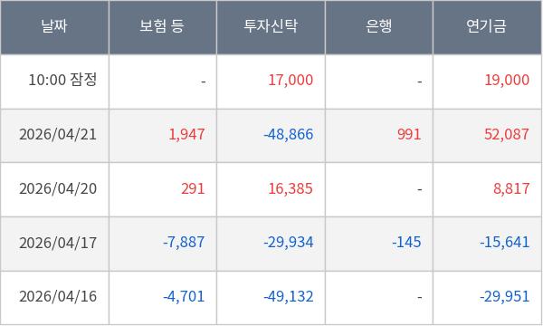 [표] 주요 기관별 순매매량 (단위 주)