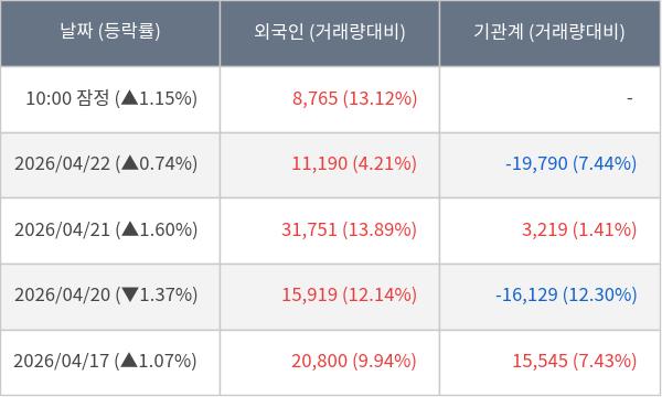 [표] 외국인ㆍ기관 순매매량 (단위 주)