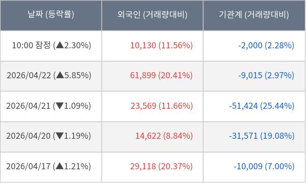 ※ 사모펀드 등 일부 기관의 순매매량은 표시되지 않음