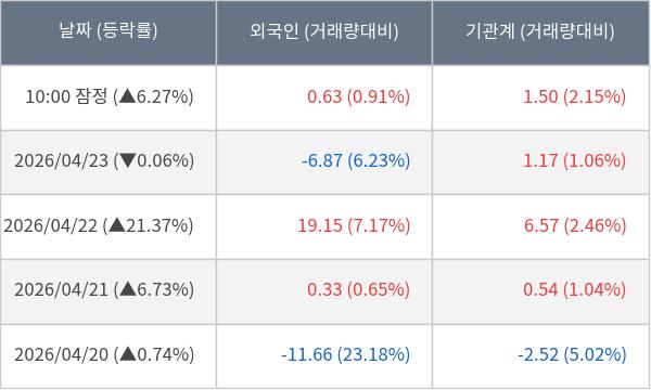 [서울=뉴스핌] 로보뉴스 = 24일 10시 15분 현재 케이프(064820)는 외국인과 기관이 각각 0.63 만 주, 1.50 만 주 순매수(잠정) 하면서 전일 대비 6.27% (현재가 16,770원) 상승하고 있다.