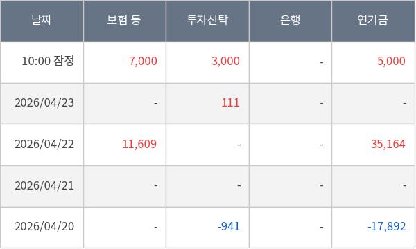 [표] 주요 기관별 순매매량 (단위 주)