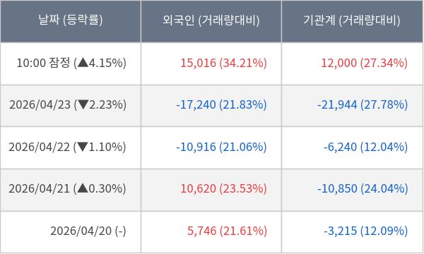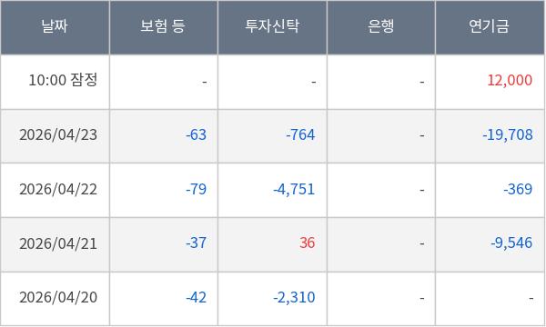 [표] 주요 기관별 순매매량 (단위 주)