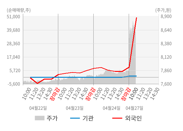 [표] 외국인ㆍ기관 순매매량 (단위 주)