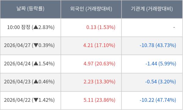 [표] 외국인ㆍ기관 순매매량 (단위 만주)