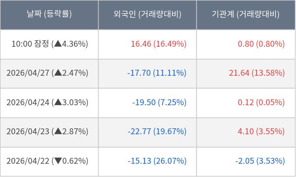 ※ 사모펀드 등 일부 기관의 순매매량은 표시되지 않음