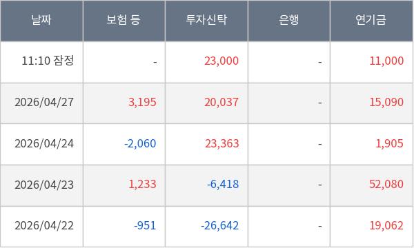[표] 주요 기관별 순매매량 (단위 주)