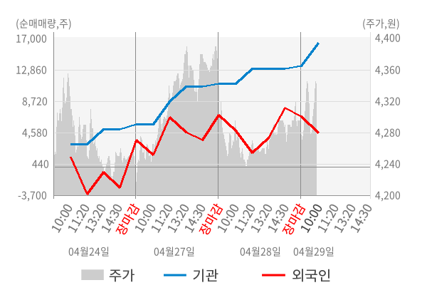 ※ 사모펀드 등 일부 기관의 순매매량은 표시되지 않음