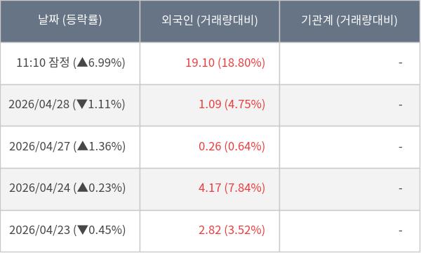 [표] 외국인ㆍ기관 순매매량 (단위 만주)