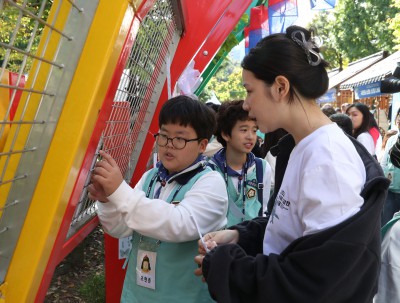 소원 종이 걸어보는 '2025 관악강감찬축제'의 마스코트 ‘리틀 강감찬’